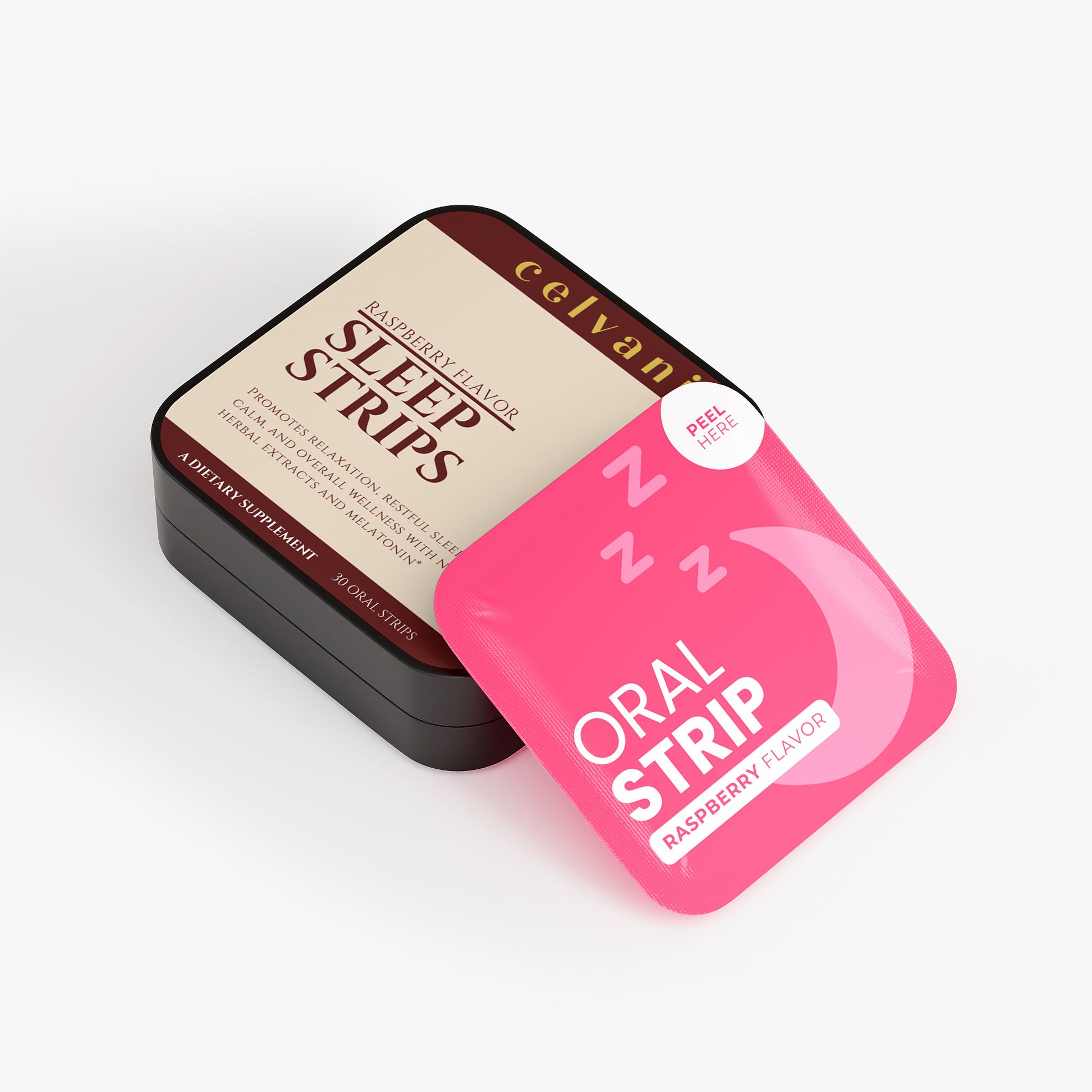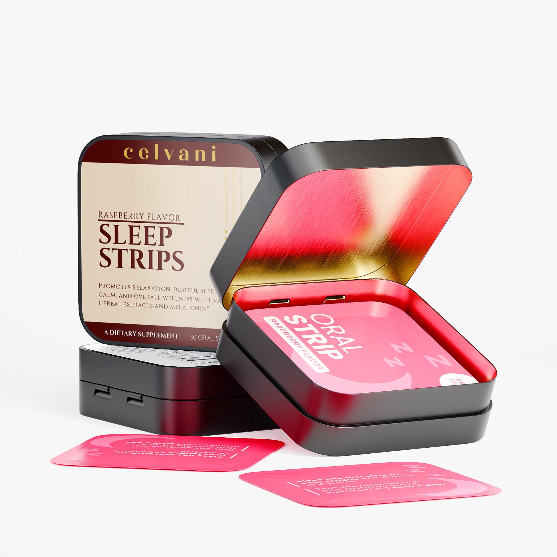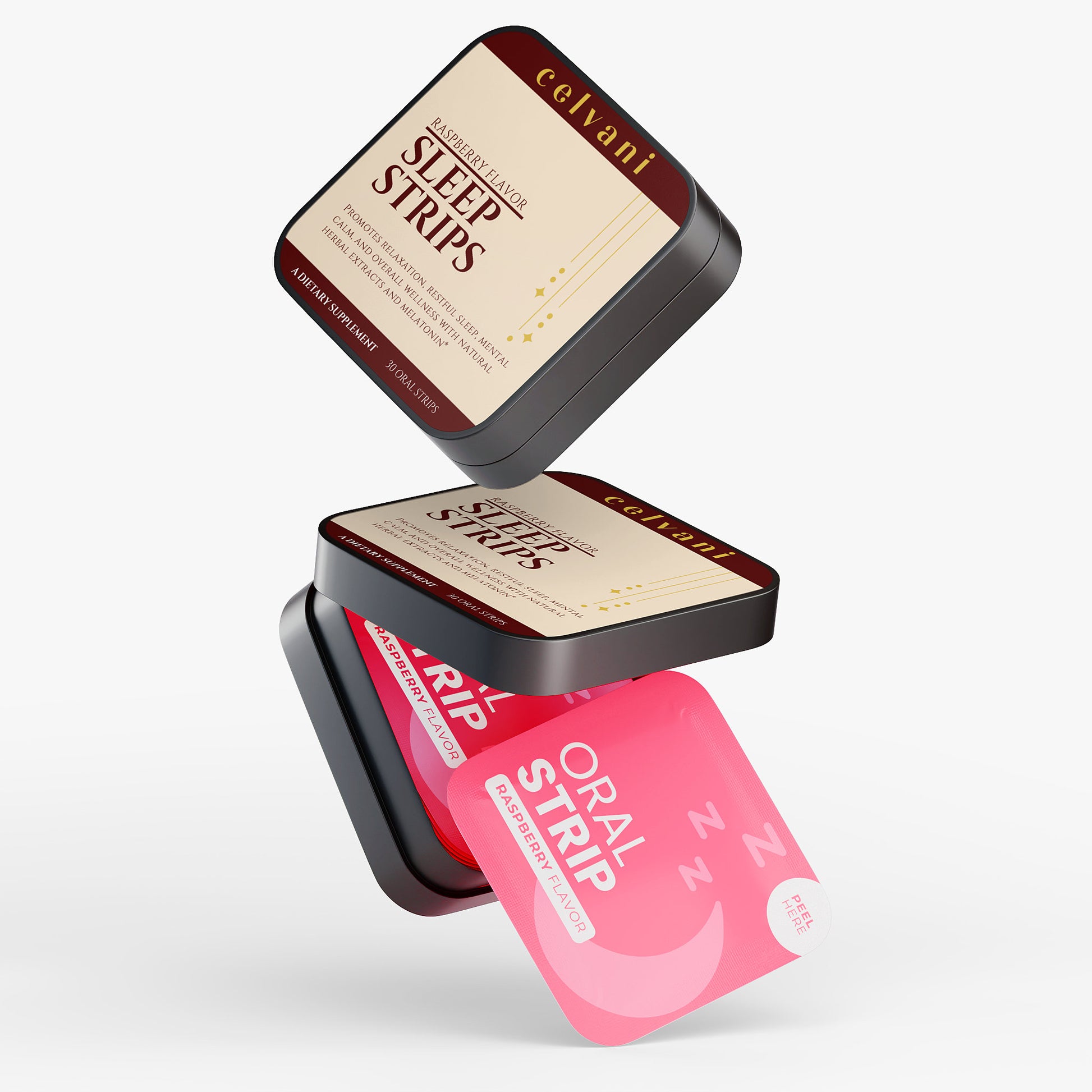 Ingredients: Pullulan, Valerian root extract, Lavender extract, Chamomile extract, Hibiscus extract, Cellulose, Raspberry Flavor, Malic acid, Xylitol, Lecithin, Erythritol, Sorbitol Syrup, Medium Chain Triglycerides, Steviol Glycosides, Melatonin